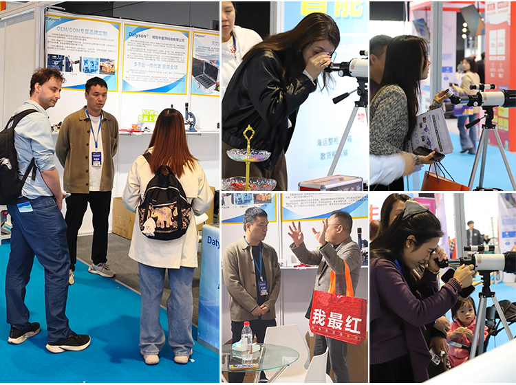 特别是我们的天文望远镜展示区,吸引了大量专业买家驻足体验。不少国内外采购商对我们的产品工艺赞不绝口,纷纷拿出手机拍摄产品细节。