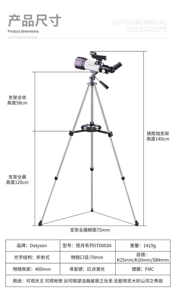 物镜口径:70mm