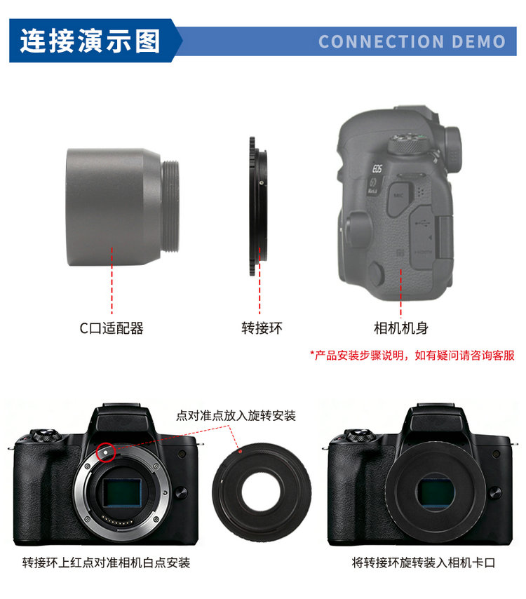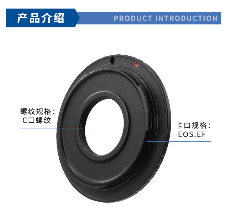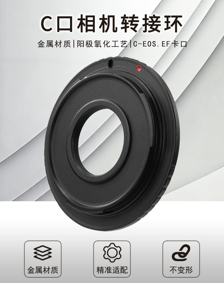 这是一款专为摄影爱好者和专业人士设计的金属转接环。它的核心功能是解决镜头与机身卡口连接的问题,允许用户将老式或工业用的C口螺纹镜头(规格为1英寸-32牙)安装到主流的佳能EOS.EF卡口单反相机机身上。通过此转接环,用户可以拓展相机的镜头兼容性,利用C口镜头进行微距摄影、工业检测或其他特殊拍摄场景。