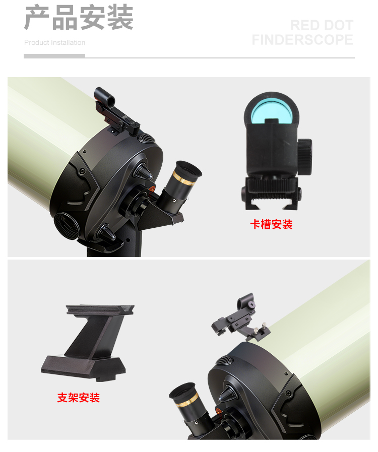 便捷无孔安装:设计上支持免打孔插入式安装,兼容性强,可轻松适配于多种常见型号的天文望远镜,安装过程简单快捷,省去繁琐的钻孔步骤。
