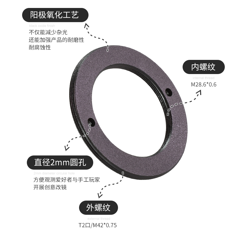 外螺纹:M42x0.75mm(匹配ZWO ASI相机原生接口)