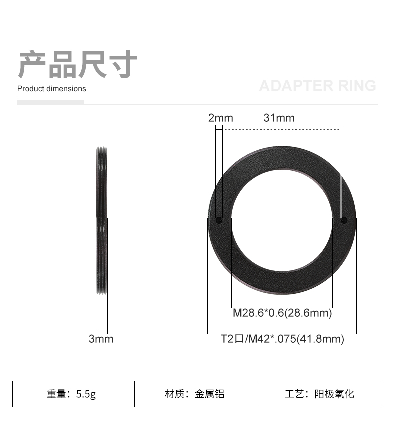 内螺纹:M28.6x0.6mm(适配1.25英寸滤镜标准接口)