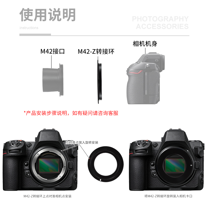 使用前请清洁镜头与转接环接触面,避免近灰尘,影响画质。