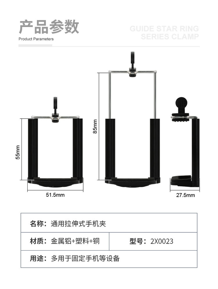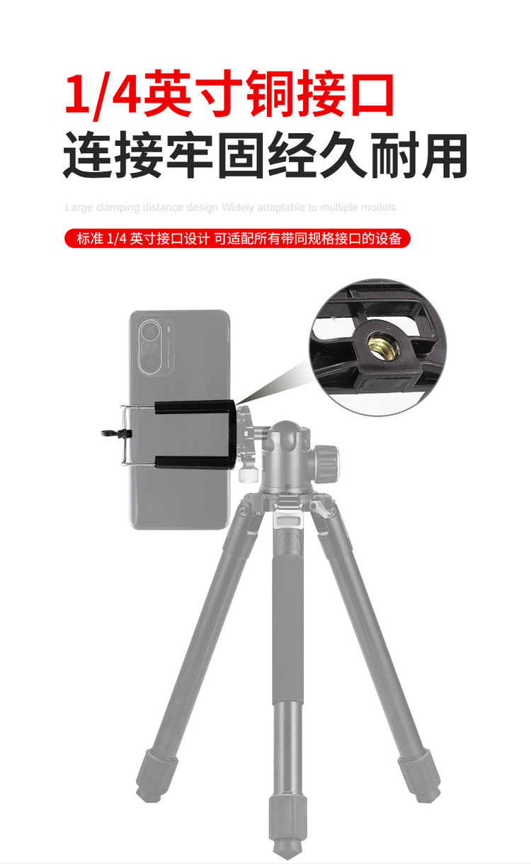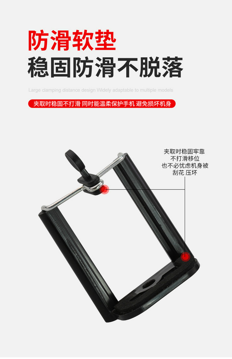 品牌:Datyson产品编号:2X0023产地:中国广东省揭阳市厂家:深圳市达泰森贸易有限公司材料:ABS,不锈钢,铜最低工作高度:5.5cm最高工作高度:8.5cm适合机型:手机,普通卡片式相机颜色:黑色
